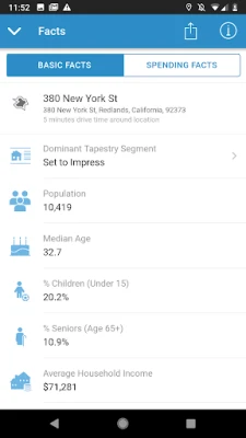 * Get a quick demographic and market snapshot for a location to understand the types of people live in that area.