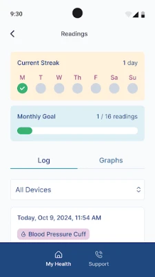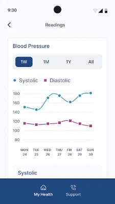 - View historical records of your vital measurements (e.g., blood pressure, glucose, weight).