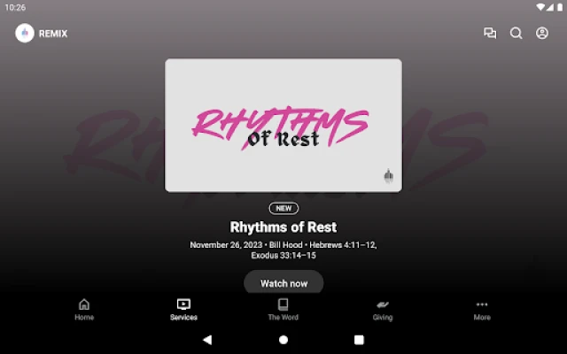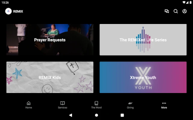 This app will help you stay connected with the day-to-day life of REMIX church. With this app you can: watch or listen to past messages; stay up to date with push notifications; share your favorite messages via Facebook, or email; and download messages for offline listening.