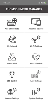 THOMSON MESH MANAGER is a Wi-Fi Mesh network management and monitoring application. You will manage your Wi-Fi Mesh Network at a finger touch by blocking or allowing Internet access per device, Scheduling Wi-Fi links , creating a Guest access, displaying on a Network map mesh node configurations and Wi-Fi links status. Changing Network Name and Password settings becomes a piece of cake.