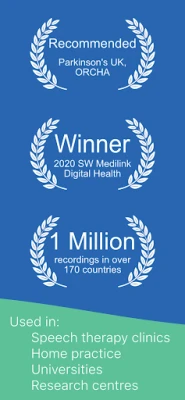 Used by Speech Pathologists / Therapists and clinics worldwide to support remote therapy sessions, including LSVT programs for Parkinson’s.